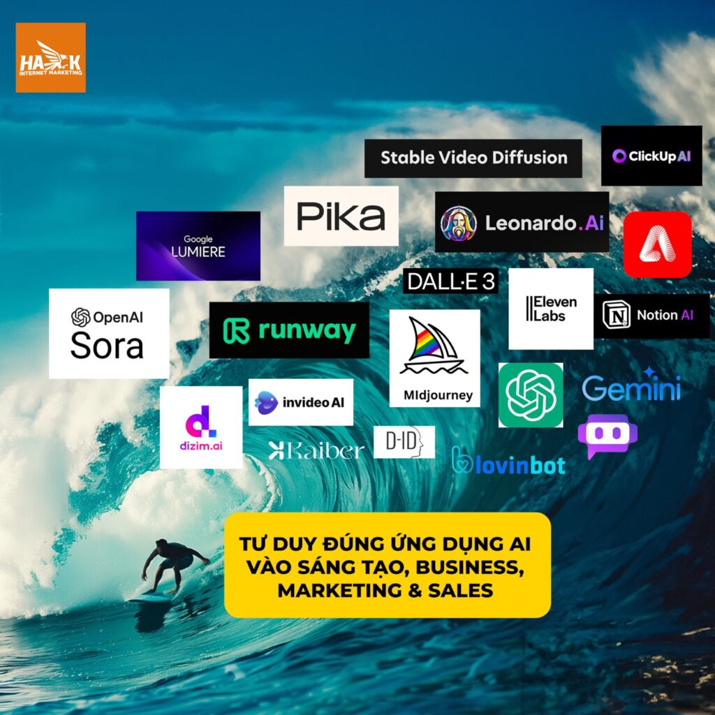 DỪNG FOMO! Vững tay chèo, chuẩn bị TƯ DUY ĐÚNG ỨNG DỤNG AI TRONG CÔNG VIỆC THỰC TẾ, cụ thể ở các chuyên môn khác nhau như Sáng tạo, Kinh doanh, Marketing, Sales, HR.
