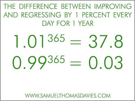 Còn nếu bạn duy trì thêm 1% mỗi ngày trong cả 365 ngày, thì cuối năm đó bạn sẽ tốt hơn chính mình gần 38 lần.